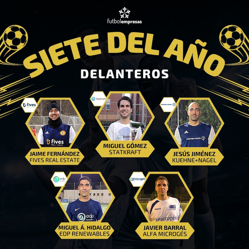 Sólo unos pocos habéis disfrutado de los mayores cazagoles del fútbol empresarial español, porque a la mayoría de vosotros os habrá tocado sufrirlos. Jaime Fernández (Fives Real Estate), Miguel Gómez (Statkraft), Jesús Jiménez (Kuehne+Nagel), Miguel Ángel Hidalgo (EDP Renewables) y Javier Barral (Alfa Microgés) no han sido capaces de saciar su hambre goleadora pese a devorar las porterías contrarias casi en cada semana. Hombres de dos caras, dan la talla en sus empresas en horario diurno y cuando cae la noche se convierten en auténticos depredadores del gol. ¿Cuál será la dupla más temida del año?