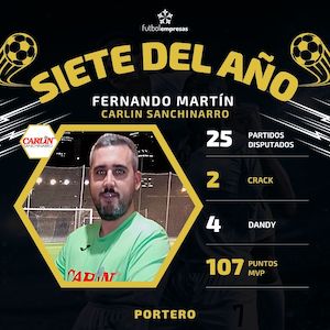 Fernando Martín (Carlin Sanchinarro), mejor portero del año: reñidísimo premio el que se ha llevado el dueño del arco de Carlin Sanchinarro, el más votado en la categoría ‘porteros’, la más igualada de todas las encuestas que se abrieron. Un solo voto de diferencia ha otorgado el título al trabajador de la empresa de papelería, que se impuso por la mínima a Rodrigo Trampal (ILPKG) tras un pulso trepidante (141 votos vs 140). La votación democrática ha optado por seguir el mismo camino que los puntos MVP recogidos durante los últimos doce meses. Y es que, desde enero, Fernando Martín se ha erigido como el cancerbero con mejores números gracias a sus 107 puntos, repartidos en 25 participaciones. Borja Borrás (AIS Financial Group) fue el tercer guardameta más aclamado con 39 votos, seguido de José Esparza (WEJYC) con 29 y de García Rueda (Credit Agricole) con 12.
