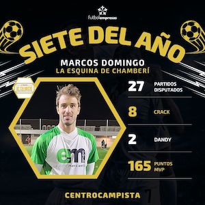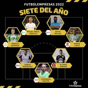 Fernando Martín (Carlin Sanchinarro), Sergio Rodríguez (BDO), Álvaro Varona (Cervezas Colegiata), Marcos Domingo (La Esquina de Chamberí), Sergio López (Einzelnet), Miguel Ángel Hidalgo (EDP Renewables) y David Molina (BBVA) son los grandes protagonistas de la mejor alineación del año. Esta formación ha podido establecerse gracias a los más de 1.500 votos recogidos a través de la web de Futbolempresas, después de haber acotado las posibilidades de elección en cada puesto (porteros, defensas, centrocampistas y delanteros) a los cinco jugadores con mayores puntos MVP obtenidos a lo largo del 2022.